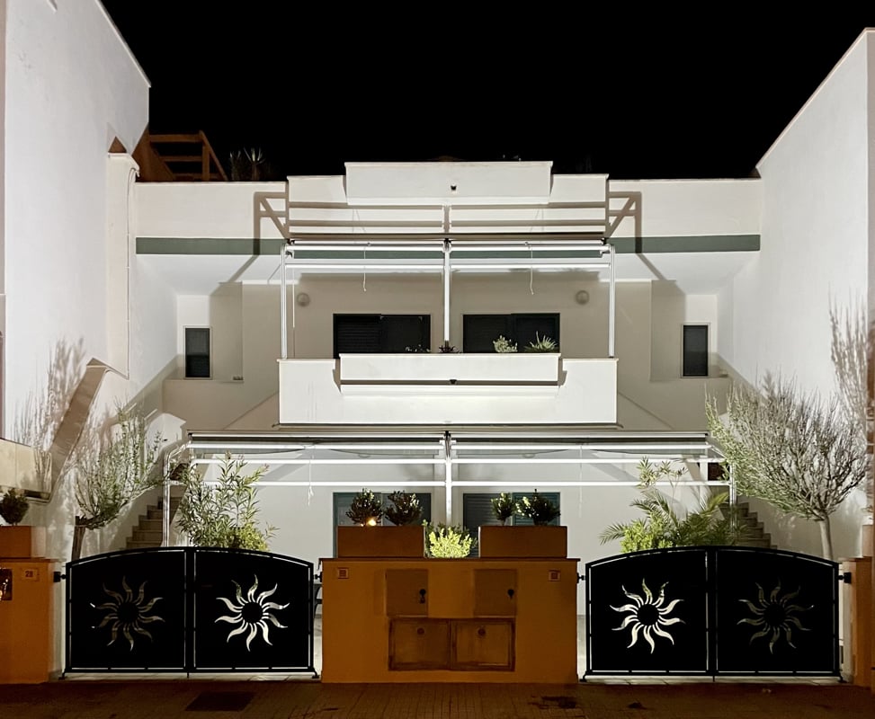 L’alloggio proposto è dislocato a piano terra ed è composto da: due camere da letto, ampio soggiorno con angolo cottura, disimpegno, ampia area esterna attrezzata con tavoli, sedie e barbecue.