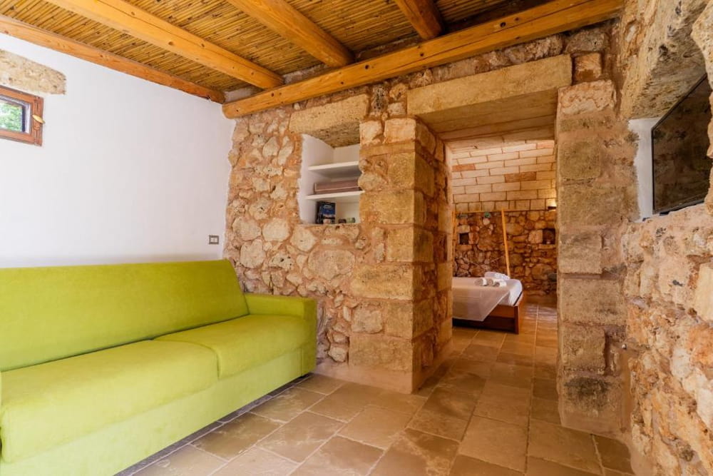 Soggiorno: Un ambiente, con un comodo divano letto che può ospitare 2 bambini.